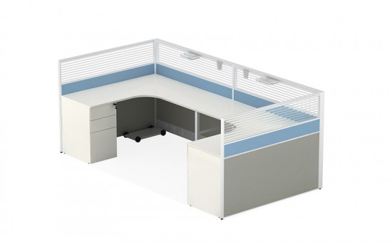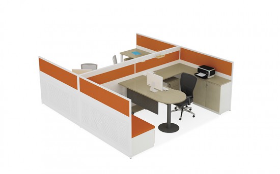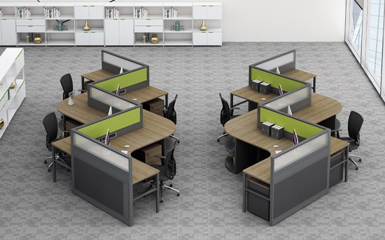 屏風(fēng):厚度有32mm,42mm或56mm三種選擇,如要求隔音效果好的可以選擇厚度高的材料。鋁合金框架,型材厚度1.5mm,表面陽極氧化處理,四向連接,方形邊蓋,屏風(fēng)可進行水平調(diào)節(jié),屏風(fēng)踢腳及桌上走線槽具備走線分線管理功能,并預(yù)留插座開孔。材料可選:絨布、防火板、鋼板加絨布或者玻璃。