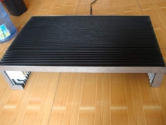 風(fēng)琴式防護罩,又名皮老虎。外用德國尼龍布,內(nèi)加PVC板支撐,邊緣則用不銹鋼板夾護。護罩具有壓縮小和行程長等優(yōu)點??赡陀停透g,硬用沖撞不變形,壽命長,密封好,行走平穩(wěn),堅固耐用給機床的使用帶來完美效果。風(fēng)箱速度可達200m/分。其次造型規(guī)則,外形美觀,為整機的整體造型增添了光彩,在為整機提供實用性保護的同時,也為機床整機增加了更多視覺上的美感,使機床的整機價值得到了提升。鋼板防護罩:是機床的傳統(tǒng)防護形式。在這一領(lǐng)域里滄州邁迪機床附件制造廠制造的鋼板防護罩被廣泛的應(yīng)用,對防止切屑及其它尖銳東西的進入起著有效的防護作用,通過一定的結(jié)構(gòu)措施及合適的刮屑板也可有效的降低冷卻液的滲入。機床的精度及速度越來越高,因此線性導(dǎo)軌應(yīng)用越來越多,一般來說廠方會為線性導(dǎo)軌配備標準的風(fēng)琴防護罩。即使是老型的機床客戶也可以自己再為其裝配。我公司在這一領(lǐng)域的服務(wù)是出色的,可以為您提供種類齊全的的產(chǎn)品。因為我們在生產(chǎn)中不斷精益求精,追求完美,可以生產(chǎn)出尺寸精確的產(chǎn)品。