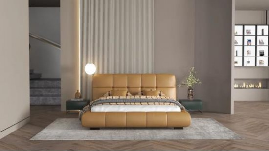 借以線條的內嵌、分割設計,軟床呈現出“巧克力塊”的造型美感,立體對稱。優(yōu)選皮質,細膩柔滑,低矮內嵌式床圓潤有型,得到視感、觸感、體感的多重舒適體驗。
