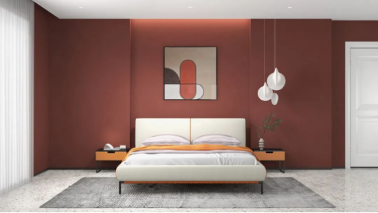 運用暖色調的涂料或壁紙,如暖橙色、焦糖色、粉紅、橘黃等色調,讓大白墻得到換裝,改善空間風格與氣質,營造溫暖的氛圍。