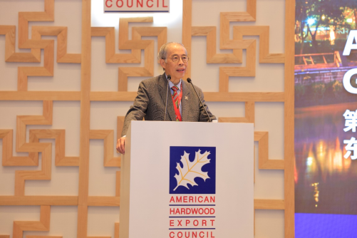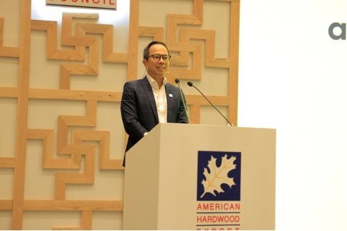 美國(guó)闊葉木外銷委員東南亞及大中華區(qū)處長(zhǎng)陳席鎮(zhèn)先生現(xiàn)場(chǎng)致辭