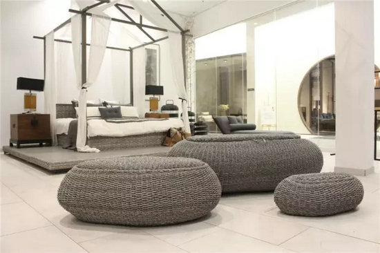 接下來(lái)我們來(lái)到DOMO nature,踏入這個(gè)空間,浮躁的心慢慢變得平靜下來(lái),你會(huì)感到非常愉悅、放松??臻g里布滿了很多藤制的家具,結(jié)合干脆利落的金屬線條,特殊的材料讓他們完全hold得住風(fēng)吹日曬雨淋的天氣,尤其適合戶外空間。賴?yán)蠋熣J(rèn)為家具也是具有生命力的,它能通過(guò)一些材質(zhì)和造型的表達(dá)與人產(chǎn)生親密無(wú)間的關(guān)系。沉浸在DOMO nature品味空間里,隨手一拍就是風(fēng)景。