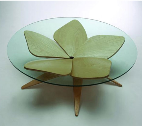 日本設(shè)計師Shige Hasegawa 的新作——花瓣桌,利用了五塊花瓣狀的膠合板撐起了玻璃桌,而且沒有用上一個螺絲,這樣設(shè)計的桌子拆裝更容易,攜帶與運輸更方便。