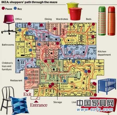 據(jù)英國《每日郵報(bào)》報(bào)道,商店設(shè)計(jì)專家稱,宜家“迷宮式”的商場布局是一種心理武器,在盡可能長時(shí)間留住顧客的同時(shí)還從心理上迫使消費(fèi)者進(jìn)行沖動消費(fèi),購買更多的商品。