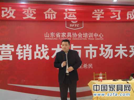 2月19-20日,山東省家具協(xié)會協(xié)培訓中心2011年第一期培訓班在濟南舉行,共有來自全省26家企業(yè)的82位相關(guān)人員參加了培訓。本次培訓由山東家協(xié)培訓中心首席講師王希民主講,主題為“營銷戰(zhàn)術(shù)與市場未來”。