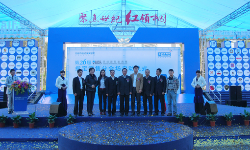 活動現(xiàn)場熱鬧非凡,特別是“注酒冰雕”的啟動儀式,將啟動儀式的氣氛推向高潮。“聚焦世紀,紅領(lǐng)中國”八個主題大字十分顯目,大氣磅礴。