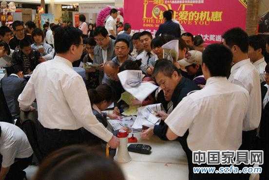 帶著假期前歐亞達(dá)家居蓄勢(shì)兇猛的宣傳,筆者來到了歐亞達(dá)家居:停車場(chǎng)一位難求,走進(jìn)商場(chǎng)更是人頭攢動(dòng),返現(xiàn)活動(dòng)、120臺(tái)空調(diào)抽獎(jiǎng)活動(dòng)、滿贈(zèng)活動(dòng)等活動(dòng)區(qū)都排起幾列長(zhǎng)長(zhǎng)的長(zhǎng)隊(duì),被前來惠顧的消費(fèi)者圍得水泄不通。各專賣店也是顧客接踵而至,致使各家導(dǎo)購員應(yīng)接不暇,在不少商家展廳內(nèi)可以看到,導(dǎo)購員已由走路變成了一路小跑,甚至商家老板也親自投入到接待和簽單工作中。