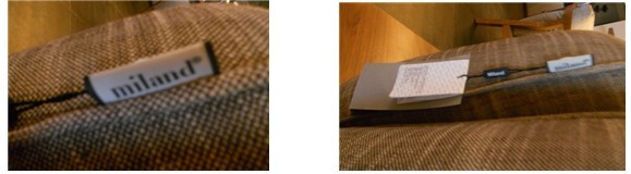 第一、米蘭家居的每一套沙發(fā)套背面都有精致的布簽LOGO,LOGO上掛有吊牌;