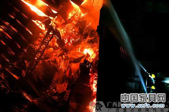 昨晚11時(shí)左右,位于柳州市潭中西路的桂中精品家具城突發(fā)火災(zāi)。該家具城室內(nèi)面積超過(guò)1萬(wàn)平方米,大火在短時(shí)間內(nèi)迅速蔓延,過(guò)火區(qū)域天花板整體坍塌,過(guò)火面積至少達(dá)1000平方米。柳州市消防支隊(duì)幾乎出動(dòng)所有消防力量,共計(jì)10個(gè)中隊(duì)、28輛消防車(chē)趕赴火場(chǎng),截至今日凌晨1時(shí),滅火戰(zhàn)斗仍在繼續(xù)。據(jù)守夜人員稱(chēng),火災(zāi)為天花板電線迸發(fā)火星,墜落后迅速引燃沙發(fā)、床墊等易燃家具。