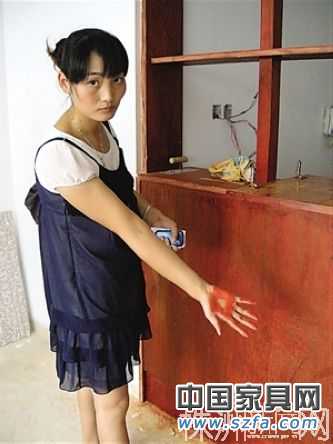 王女士用手在粉刷了一個星期的木板上一擦,就染了滿手板的棕紅色。