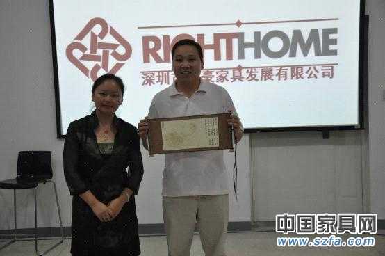 結(jié)業(yè)典禮上中國(guó)家具產(chǎn)業(yè)教育學(xué)院院長(zhǎng)賴(lài)珍珍向仁豪鄭達(dá)峰贈(zèng)予禮物