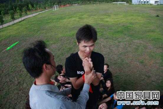 天公不作美,拓展訓練的中途突然下下起了大雨,大家一下子被淋成了落湯雞,但是依然堅持完成戶外拓展項目,“你們準備好了么?”“準備好了?。?!”“我要倒下了!”“我們接住你?。?!”,拓展的時候這幾句對話不斷回蕩在訓練場地上,臺下,一個個馬步扎穩(wěn),全神貫注,一雙雙堅定的手交織搭在一起時刻準備接著臺上即將倒下的同伴,臺上,雙手被綁,緊抱在胸前,兩眼一閉,身體挺直,倒下然后穩(wěn)穩(wěn)地被接?。∵@就叫做信任背摔,不管是哪一個上面的人倒下,下面的人總會安全接住他,風雨無阻!信任是互相的,你不信任你的隊友,你就不敢倒下,你沒有責任心你就不會緊握住各自的臂膀,接不住倒下的隊友!