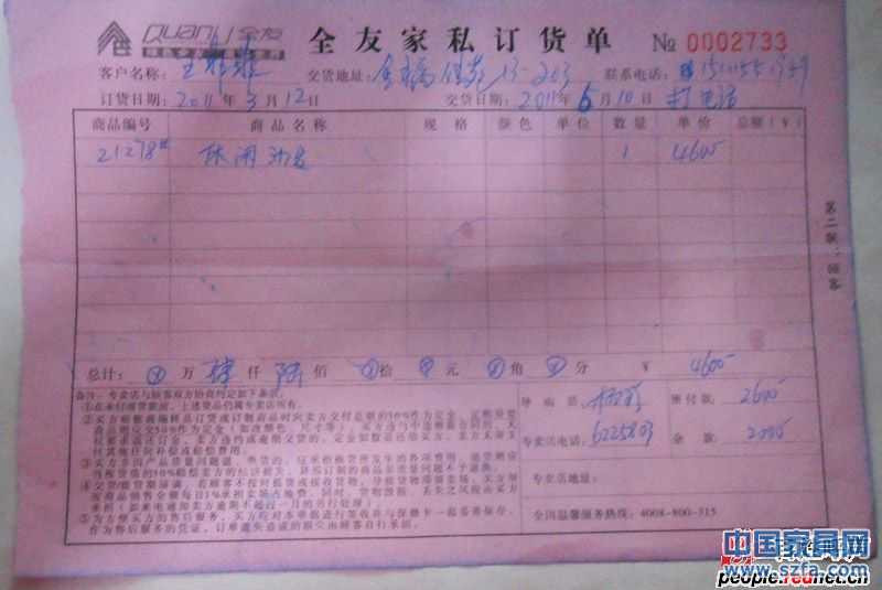 為此,她向新晃全友家俬專賣店提出了退款,但遭到對方拒絕。紅網(wǎng)記者在核實該網(wǎng)友投訴的相關(guān)情況后,立即與全友家俬總部和新晃縣工商局取得了聯(lián)系。在查看了張女士提供的沙發(fā)“污漬”照片及沙發(fā)訂購合同后,全友家俬總部認定該沙發(fā)“在發(fā)貨之前因保管不善,存在質(zhì)量問題”。