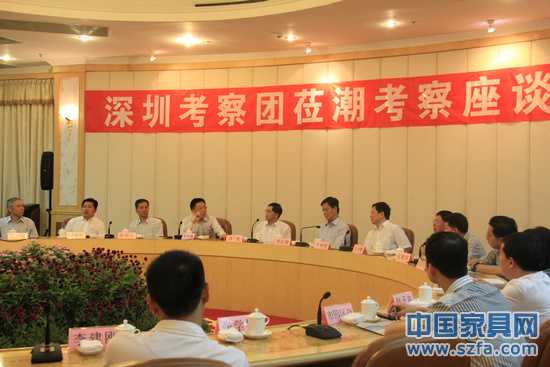 深圳家具行業(yè)協(xié)會秘書長侯克鵬從行業(yè)整體布局出發(fā),結合深圳家協(xié)在全國已規(guī)劃的產(chǎn)業(yè)園區(qū)之經(jīng)驗,對深圳(潮州)產(chǎn)業(yè)轉移工業(yè)園提出了四點建議和看法.贏得了市委領導的肯定和贊賞.市領導表示希望能借力深圳家協(xié)的成熟園區(qū)規(guī)劃理念和經(jīng)驗.共同打造家具產(chǎn)業(yè)園區(qū)。