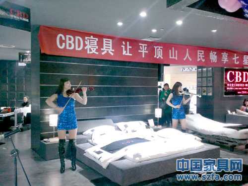 慶典當(dāng)天,CBD寢具店也是裝飾一新,活動(dòng)氛圍熱烈。還特別請(qǐng)到當(dāng)?shù)刂哪L貋?lái)詮釋CBD時(shí)尚潮流的軟床,伴著優(yōu)雅的小提琴表演,帶給人們視覺與聽覺的雙重享受,很多消費(fèi)者都是慕名而來(lái),更使得CBD寢具成為整個(gè)商場(chǎng)的焦點(diǎn)。