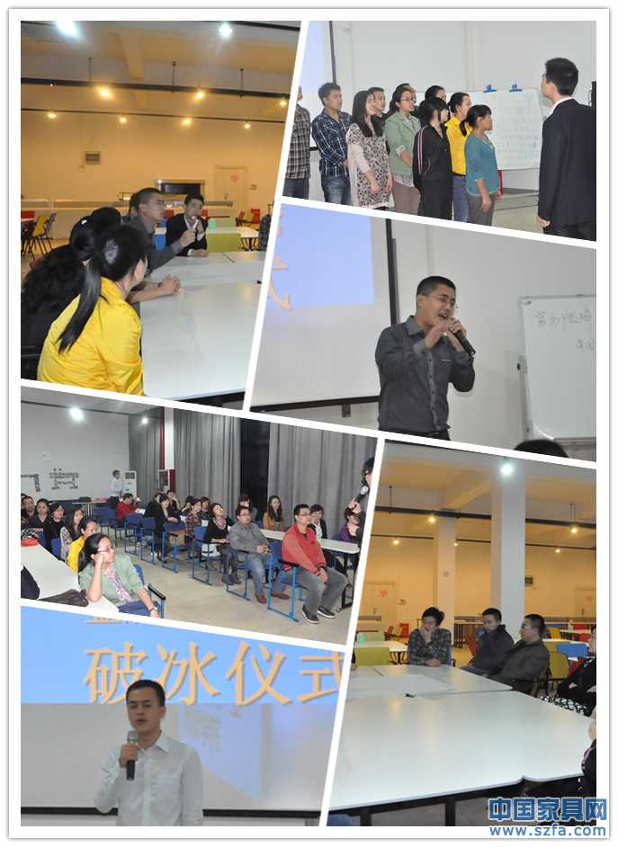 ?。ㄍ砩系钠票鶅x式上,助教,全中云,宋國棟幫助學(xué)員進(jìn)行團(tuán)隊(duì)組建,隊(duì)長(zhǎng)帶領(lǐng)隊(duì)員在臺(tái)上進(jìn)行士氣展示,完后,破冰儀式在游戲“密碼傳遞”的愉快進(jìn)行中結(jié)束)