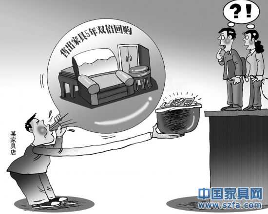 日前,天津市某門戶網(wǎng)站上,一位網(wǎng)友發(fā)帖子稱:“對(duì)于每個(gè)家庭來(lái)說(shuō),家具算是大宗必需品,然而,在年初‘達(dá)芬奇’事件發(fā)生以后,家具行業(yè)面臨著信任危機(jī)。天津市河西區(qū)紅星美凱龍商場(chǎng)‘原木尚品家具’最近作出承諾,稱售出的榆木家具5年后雙倍價(jià)回購(gòu)……家具用5年,還能以雙倍價(jià)賣出,真有這樣的好事?”很多消費(fèi)者回帖質(zhì)疑,這里面有沒(méi)有欺詐?是否存在消費(fèi)陷阱?記者就此進(jìn)行了調(diào)查。