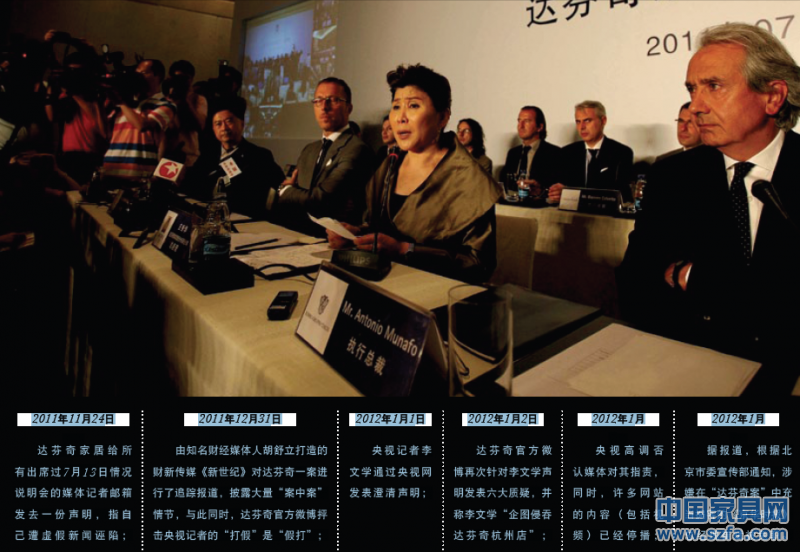 結(jié)論三:央視爆出的東莞長(zhǎng)豐家具替達(dá)芬奇代工意大利卡布麗 緹家具,完全是假新聞。有東莞長(zhǎng)豐的兩位證人和卡布麗緹意大利方 代表作證,所謂“代工”,只是跟單員在記者反復(fù)誘導(dǎo)下撒的一個(gè)謊 而已。另一起媒體糾紛中,廣東某媒體所指達(dá)芬奇委托順德一家企業(yè) 代工,并與達(dá)芬奇互指將起訴對(duì)方。如果司法介入,這一糾紛的是非 則非常容易查實(shí)。