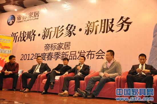 2012年02月10日,帝標(biāo)家居2012年春季新品發(fā)布會(huì)在成都金牛山莊舉行。同時(shí),帝標(biāo)家居還特別邀請(qǐng)了成都市商務(wù)副局長(zhǎng)川曾洪揚(yáng)、成都市貿(mào)易促進(jìn)委員會(huì)方雷、家具出口商會(huì)秘書長(zhǎng)榮煜偉 、香江全球家居CBD總經(jīng)理莫志貴、成都好百年管理有限公司副總經(jīng)理陳偉新、搜狐電商總監(jiān)丁永興等參加經(jīng)銷商終端突圍論壇。