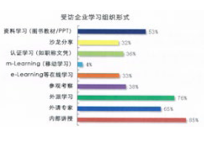 “內(nèi)部講授、外派學(xué)習(xí)、外請專家、資料學(xué)習(xí)”成為企業(yè)的主要學(xué)習(xí)組織形式,占據(jù)了企業(yè)學(xué)習(xí)的大部分比例,也是培訓(xùn)管理者設(shè)計學(xué)習(xí)項目時的常用方式。