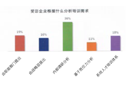 36%的企業(yè)根據(jù)“內(nèi)部調(diào)研”分析培訓(xùn)需求,18%的企業(yè)根據(jù)“系統(tǒng)的人才培訓(xùn)體系”確定培訓(xùn)需求,中國企業(yè)在分析培訓(xùn)需求時(shí)正逐步走向科學(xué)化和系統(tǒng)化。