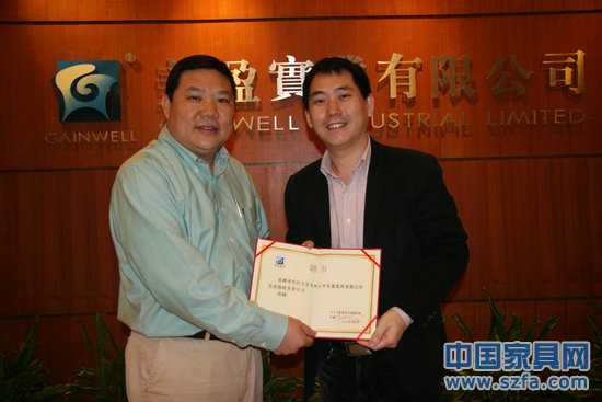 美盈實(shí)業(yè)總裁黎偉良先生(左)親自為符凱先生(右)傳授聘書(shū)