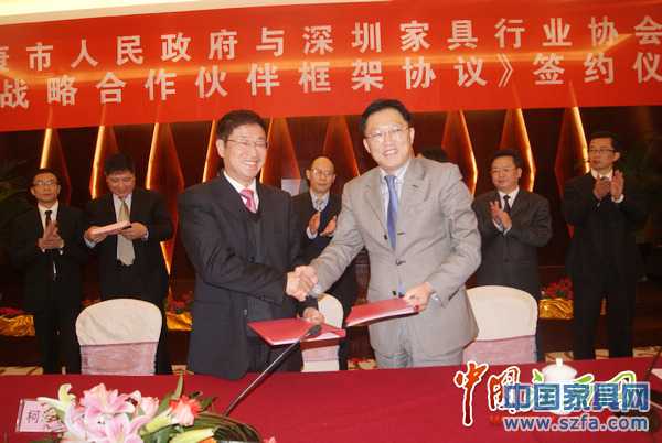 市長(zhǎng)柯巖松與深圳家具協(xié)會(huì)會(huì)長(zhǎng)侯克鵬分別代表我市和深圳家具協(xié)會(huì)簽訂《家具戰(zhàn)略合作伙伴框架協(xié)議》,協(xié)議約定雙方將在產(chǎn)業(yè)規(guī)劃、品牌建設(shè)、企業(yè)管理、市場(chǎng)建設(shè)與管理等方面進(jìn)行廣泛合作。