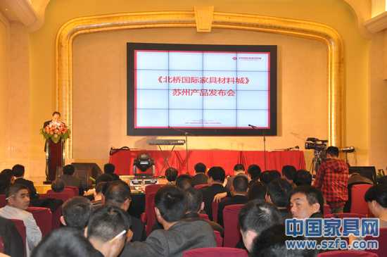 2012年3月30日上午,北橋國際家具材料城蘇州產(chǎn)品發(fā)布會暨戰(zhàn)略簽約儀式在蘇州相城區(qū)白金漢爵大酒店四樓會議室盛大舉行。蘇州家具協(xié)會秘書長倪國良、蠡口家具協(xié)會秘書長顧建中、蘇州潤祥泰和實業(yè)有限公司董事長胡衛(wèi)東、總經(jīng)理褚天貝及蘇州相城區(qū)工商銀行相關(guān)領(lǐng)導(dǎo)、全國各地家具原材料企業(yè)負責人等出席此次發(fā)布會。