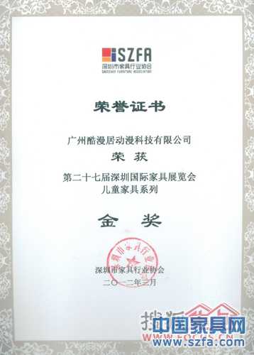 在剛剛結(jié)束的第27屆深圳家具展上,酷漫居推出的全面升級(jí)的系列青少年兒童動(dòng)漫家具獲得了市場(chǎng)上良好的反應(yīng),不僅吸引了眾多國(guó)內(nèi)經(jīng)銷商的關(guān)注和加盟,而且憑借良好的產(chǎn)品品質(zhì)和獨(dú)特的原創(chuàng)設(shè)計(jì),被深圳家具行業(yè)協(xié)會(huì)和第27屆深圳家具展組委會(huì)授予“質(zhì)量環(huán)保金獎(jiǎng)”和“產(chǎn)品設(shè)計(jì)金獎(jiǎng)”。