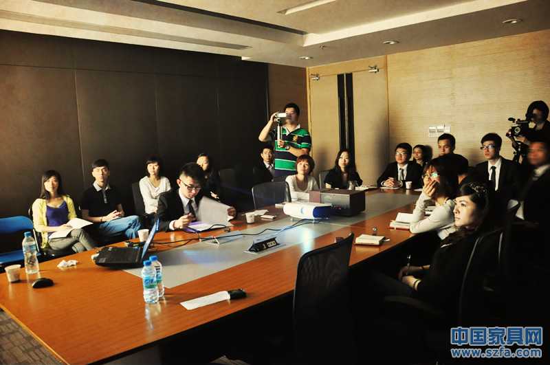 早上9點(diǎn),深圳舒達(dá)甜夢(mèng)家居用品有限公司輔導(dǎo)員與中國(guó)家具產(chǎn)業(yè)教育學(xué)院工作人員坐在會(huì)議室,準(zhǔn)備開(kāi)會(huì)。