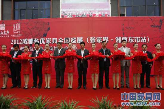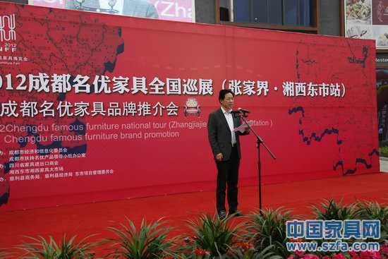 4月7日,由成都市經(jīng)濟(jì)與信息化委員會(huì)、成都市扶持名優(yōu)產(chǎn)品領(lǐng)導(dǎo)小組辦公室主辦,四川省家具進(jìn)出口商會(huì)承辦的“成都名優(yōu)家具全國(guó)巡展”在湖南省張家界市慈利縣湘西東市家具大市場(chǎng)拉開帷幕,成都市經(jīng)濟(jì)與信息化委員會(huì)副主任雷鳴驚,成都市經(jīng)信委扶持名優(yōu)產(chǎn)品領(lǐng)導(dǎo)小組副主任明亮,四川省家具進(jìn)出口商會(huì)常務(wù)副會(huì)長(zhǎng)、秘書長(zhǎng)榮煜偉,慈利縣縣委常委、副縣長(zhǎng)劉坤明及先驅(qū)、意凡、好迪等近百家四川品牌家具企業(yè)負(fù)責(zé)人參與開幕儀式。