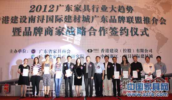 當(dāng)天,簽訂戰(zhàn)略合作聯(lián)盟的廣東家具品牌商數(shù)達(dá)近10家(其中包括德興發(fā)家具有限公司,東莞城市之窗家具有限公司,四海家具制造有限公司,廣東大公館家具制造有限公司,深圳市嘉豪何室實(shí)業(yè)有限公司,紅蘋果家具有限公司,深圳市仁豪家具發(fā)展有限公司,銦琦誠(chéng)家具發(fā)展有限公司,敏華家具制造有限公司,東莞市永信家具制造有限公司)