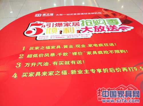 除了這兩家賣場以外,包括紅星美凱龍香蜜湖店,博耐家居等深圳多家賣場均在五一前夕就打出了“給力促銷”,“賣場家具節(jié)”等標語,成為節(jié)假日另外一道風景線。
