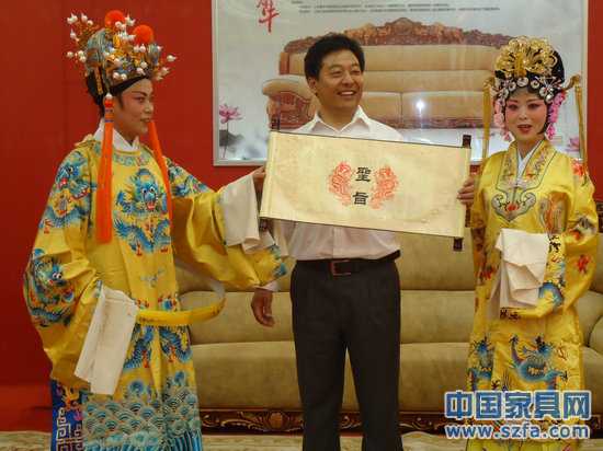 2012年4月28日,犀牛企業(yè)攜旗下產(chǎn)品高調(diào)參展首屆中國(guó)蘇州文化創(chuàng)意設(shè)計(jì)產(chǎn)業(yè)交易博覽會(huì)。開展當(dāng)天,犀牛的展位上來(lái)了兩位至高無(wú)上的人物——唐明皇和楊貴妃。這對(duì)千古璧人借國(guó)家一級(jí)演員王永蘭、吳愛玲女士?jī)扇说木垦菁即┰降搅爽F(xiàn)代,并給犀牛頒布了一道圣諭:[茲聞蘇州首屆創(chuàng)意設(shè)計(jì)產(chǎn)業(yè)交易博覽會(huì)于公元二零一二年四月二十八日于蘇州國(guó)際博覽中心隆重舉行。犀牛企業(yè)致力于“傳承百年文化,東方智造”的產(chǎn)品理念。己于公元二零一一年經(jīng)過(guò)業(yè)內(nèi)資深專業(yè)人士策劃,成功推出犀牛系列并入主中南海,成為全國(guó)首家家具企業(yè)“中南海高端沙發(fā)供應(yīng)商”成為有文化、有品位、收藏愛好者、成功人士的家具首選高檔品牌。犀牛企業(yè)根據(jù)高端顧客的需求,推出了獨(dú)一無(wú)二的定制化服務(wù)。布告中外,咸使聞之。