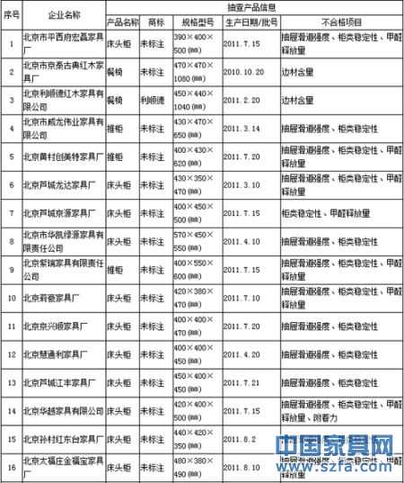 此次共抽查北京市261家企業(yè)生產(chǎn)的261批次木制家具產(chǎn)品,依據(jù)相關(guān)標(biāo)準(zhǔn)和北京市產(chǎn)品質(zhì)量監(jiān)督抽查方案進(jìn)行了檢驗(yàn),發(fā)現(xiàn)的主要問(wèn)題是:抽屜滑道強(qiáng)度、柜類(lèi)穩(wěn)定性、甲醛釋放量等項(xiàng)目不符合標(biāo)準(zhǔn)要求。