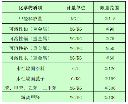 對(duì)于家居業(yè),目前,國(guó)內(nèi)應(yīng)用的環(huán)保標(biāo)準(zhǔn)主要是對(duì)“甲醛釋放量”、“重金屬含量”、“VOC含量” 、“苯”等化學(xué)物質(zhì)進(jìn)行檢測(cè)。具體指標(biāo)為: