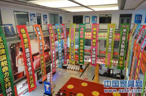 城外誠的賣場外墻上,橫幅、標(biāo)語林立,各廠家紛紛鼎力支持