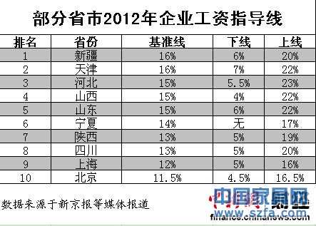 10省市2012年企業(yè)工資指導(dǎo)線一覽
