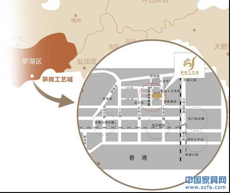 筍崗工藝城三期毗鄰國內(nèi)外知名家具建材品牌(百安居、金海馬、家之福、好百年、百利瑪、樂安居、金寶來、富來居、達(dá)芬奇等)云集的深圳市羅湖區(qū)寶安北路,位于政府恢弘規(guī)劃的筍崗