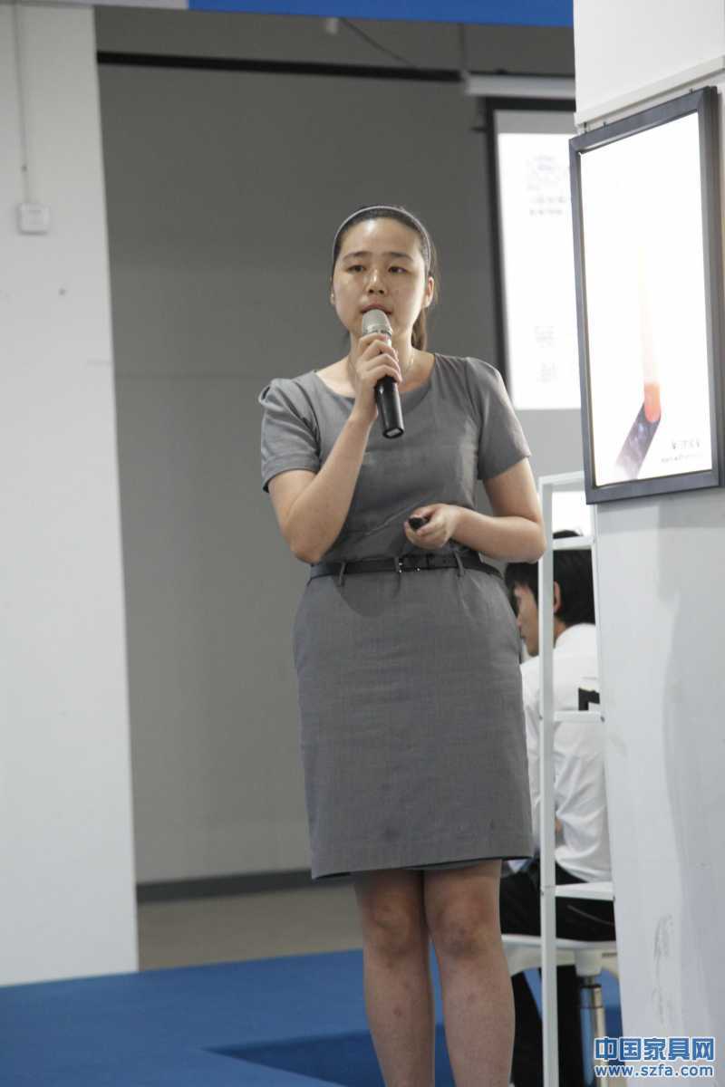 深圳市家具研發(fā)院戰(zhàn)略規(guī)劃師崔卓君正在進(jìn)行國際標(biāo)桿品牌潮流解析