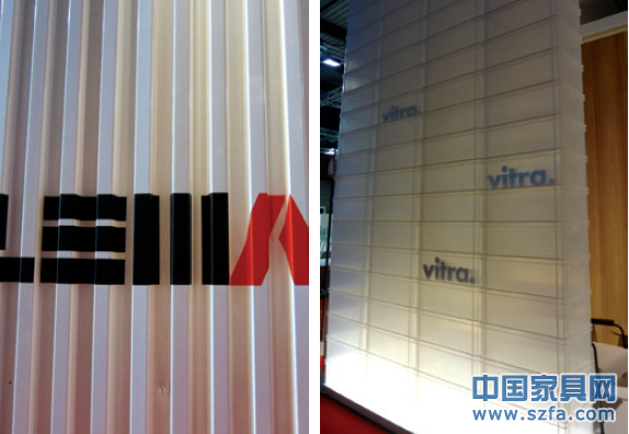 LOGO是人們對(duì)品牌記憶的符號(hào),其重要性不言而喻,為了很好的展示自己的LOGO,大家都會(huì)在上面花足心思。每年展會(huì)上,我們不難看見金光閃閃、造價(jià)不菲的各式LOGO,但設(shè)計(jì)的意義更在 于用創(chuàng)意來提升價(jià)值。米蘭展的這個(gè)品牌在簡(jiǎn)單的背景板上,以紅黃兩色絨線通過編織的手法將品牌LOGO顯襯出來,花費(fèi)少,卻異常醒目。