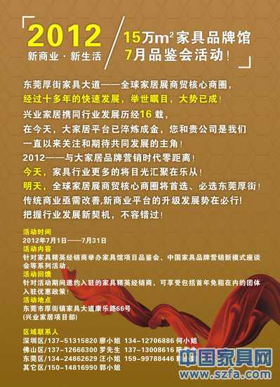核心提示:興業(yè)家居誠邀各位先生女士蒞臨 “2012興業(yè)家居?新商業(yè)?新生活——15萬㎡家具品牌館7月品鑒會”活動!