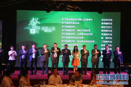 26日的蘇州飄著細雨,美麗的相城湖畔,燈火輝煌,斯可馨家居在這里隆重舉行“馨福十三年”感恩之夜大型慶典活動。各級政府領導、各省市家協(xié)領導、家具各界合作伙伴、媒體朋友與斯可馨經銷商代表、斯可馨員工代表匯聚一堂,喜迎斯可馨十三歲生日。18時,中國家具協(xié)會副理事長陳寶光先生受斯可馨董事長胡衛(wèi)東先生之邀,來到斯可馨“馨福十三年”感恩之夜現場,受到斯可馨的熱情迎接。