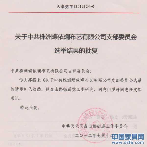 中共株洲蝶依斕支部委員會(huì)選舉結(jié)果批復(fù)