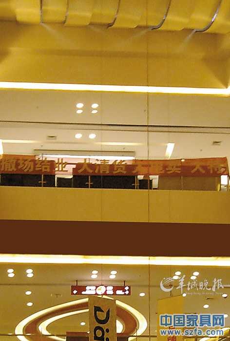 在番禺夏滘地鐵站附近,一家家具賣(mài)場(chǎng)2-4層到處掛出了“撤場(chǎng)結(jié)業(yè),大清貨,大甩賣(mài),大特價(jià)”的橫幅和吊旗,大多數(shù)商戶(hù)的貨物已經(jīng)被清理得差不多了,除了少量的家具,剩下的只有一張張被拋棄的單據(jù)。