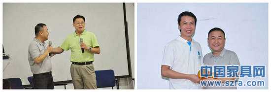 曲美趙瑞海接受中國家具產(chǎn)業(yè)教育學(xué)院送上的禮物,學(xué)員代表上臺(tái)送上禮物。