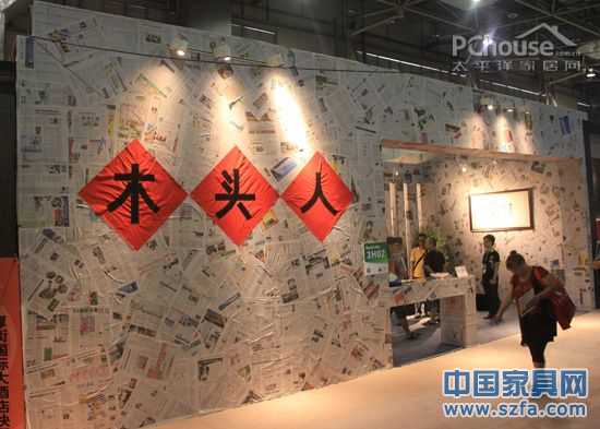 木頭人紙展廳:這是筆者見過的有史以來最省錢的展位設(shè)計(jì):用報(bào)紙搭建展廳??峙潞芏嗳藢?duì)此聞所未聞,但是在本屆東莞名家具展現(xiàn)場(chǎng),卻見到了這樣的“紙廳”。