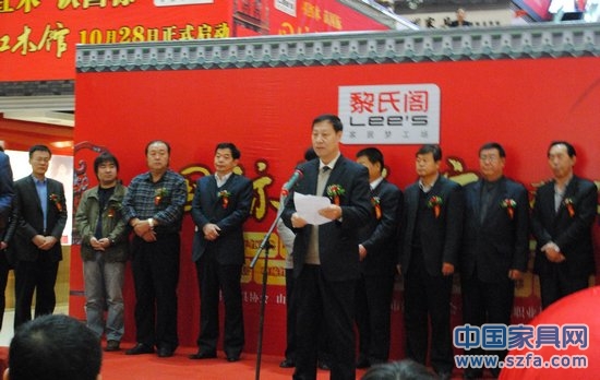 10月28日,由山西黎氏閣家具廣場(chǎng)有限公司主辦的"國(guó)標(biāo)紅木館掛牌儀式"在中國(guó)太原迎澤橋西家具廣場(chǎng)隆重舉行。中國(guó)家具協(xié)會(huì)副理事長(zhǎng)劉金良,太原市工商局副局長(zhǎng)、太原市消費(fèi)者協(xié)會(huì)會(huì)長(zhǎng)郭建新,故宮博物院研究員、古典家具專家胡德生等省內(nèi)外領(lǐng)導(dǎo)、專家濟(jì)濟(jì)一堂,與省內(nèi)各大主流媒體共同見(jiàn)證了山西家具行業(yè)使上的又一重要時(shí)刻。