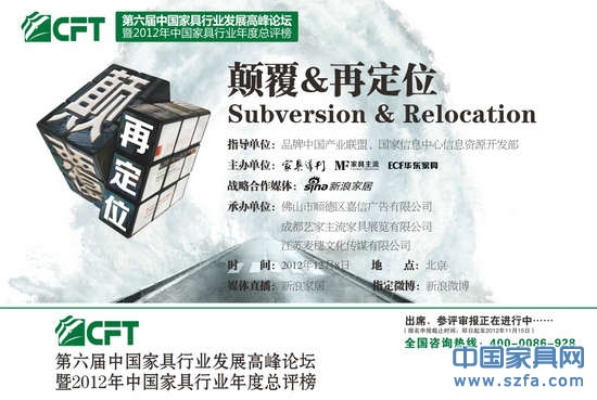 2012年對中國家具行業(yè)而言,是一個特殊的年份,國際環(huán)境風(fēng)云莫測,海外市場趨勢未明,而國內(nèi)又同時面臨著產(chǎn)能過剩,通貨膨脹以及房地產(chǎn)調(diào)控等種種不利形勢。在這個充滿不確定性的時代,如何顛覆傳統(tǒng),重新定位?進(jìn)入二次創(chuàng)業(yè)期的企業(yè),又該以怎樣的身份直面內(nèi)需為本的新時代?以電商為代表的新渠道,會不會開啟流通變革的3.0時代?2012年12月,在首都北京,“顛覆&再定位”中國家具行業(yè)發(fā)展高峰論壇暨第六屆(2012)中國家具行業(yè)年度總評榜盛典上,以艾豐、李光斗、鄧德隆為代表的數(shù)百名意見領(lǐng)袖和實戰(zhàn)精英,將就以上話題展開討論,探討家具行業(yè)將以怎樣的姿態(tài),應(yīng)對挑戰(zhàn)。