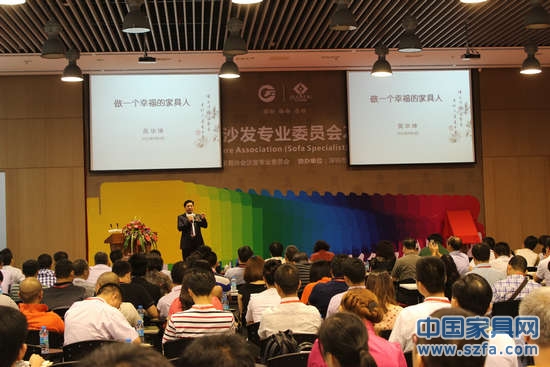 黃華坤會長在2012年沙發(fā)年會上進(jìn)行《做一個(gè)幸福的家具人》的演講
